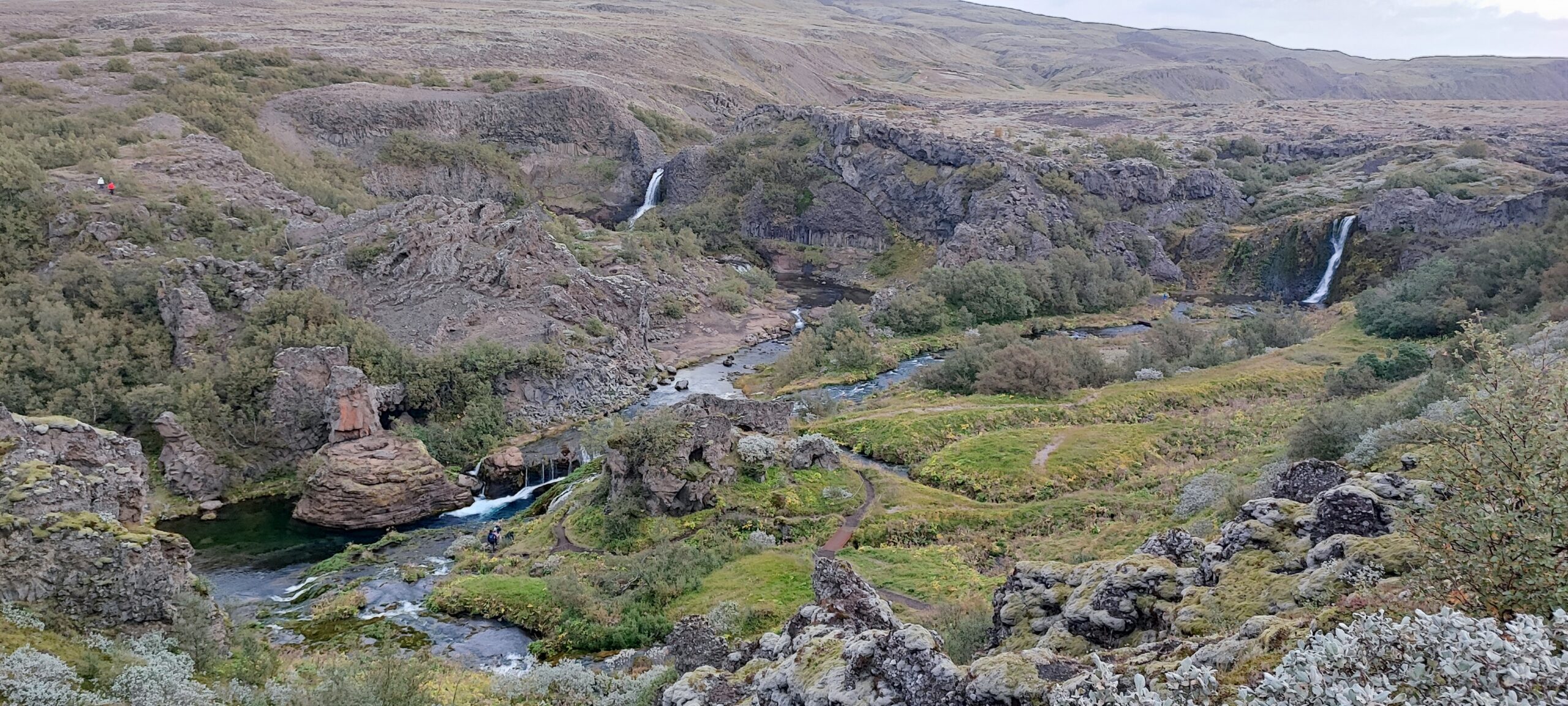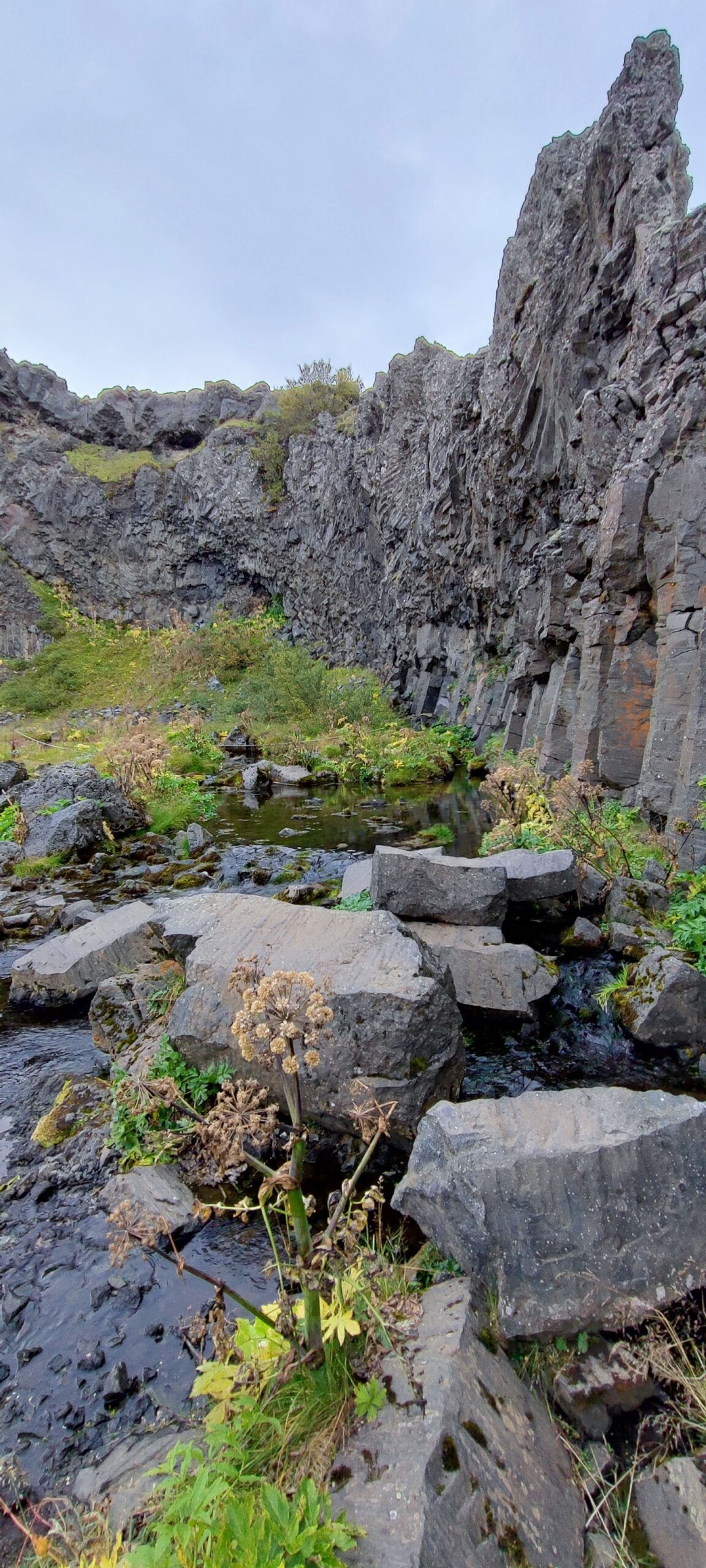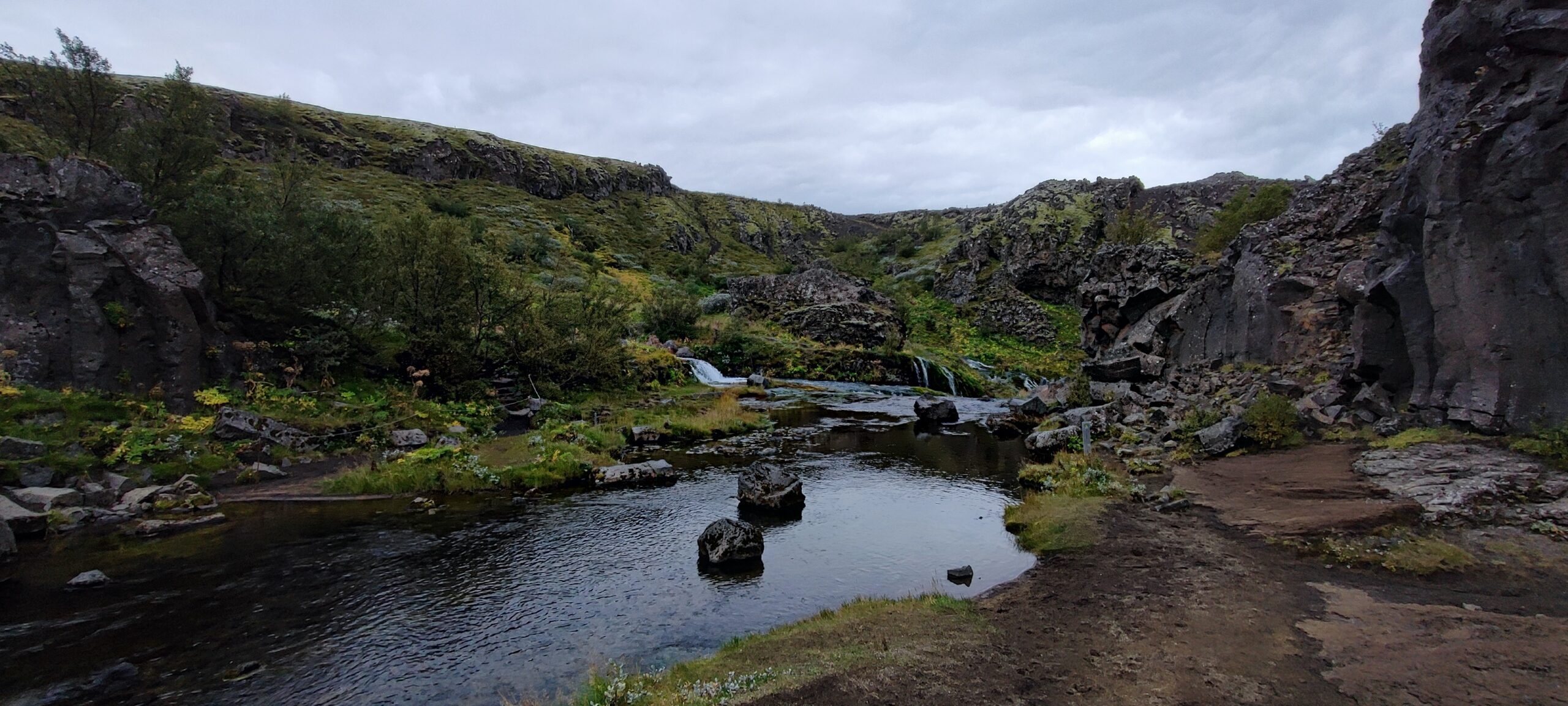 Heute in der Früh war es so weit, Lexe probiert das Auto aus. Unser Ziel war Gjáin. “Gjáin (isländisch für die Schlucht) ist ein kurzer Talbereich im Süden Islands mit zahlreichen kleineren Wasserfällen des Flusses Rauðá. An der oberen kesselartigen Eintiefung befindet sich der Wasserfall Gjárfoss.” Hätte ich gewusst, wie der letzte Teil der Straße ist, wäre ich wahrscheinlich nicht gefahren. ;- ) Es war nämlich eine der berüchtigten Gravel Roads. Oida, sag ich da nur. Wir sind dahin gehoppelt und waren danach definitiv wachgerüttelt. Es gab sogar eine Stelle, wo “Furten für blutige Anfänger” angesagt war. Furten bedeutet, dass man durch einen Fluß fahren muss. Es war eigentlich nur ein Bächlein, das nicht tiefer war als eine Lacke, aber immerhin. Hihi! Mein Papa hätte sich krumm und scheckig gelacht über mich, dass ich so ein Schisserchen bin, aber ich glaube, er wäre auch ein bisschen stolz auf mich, dass ich mich getraut habe, zu fahren.