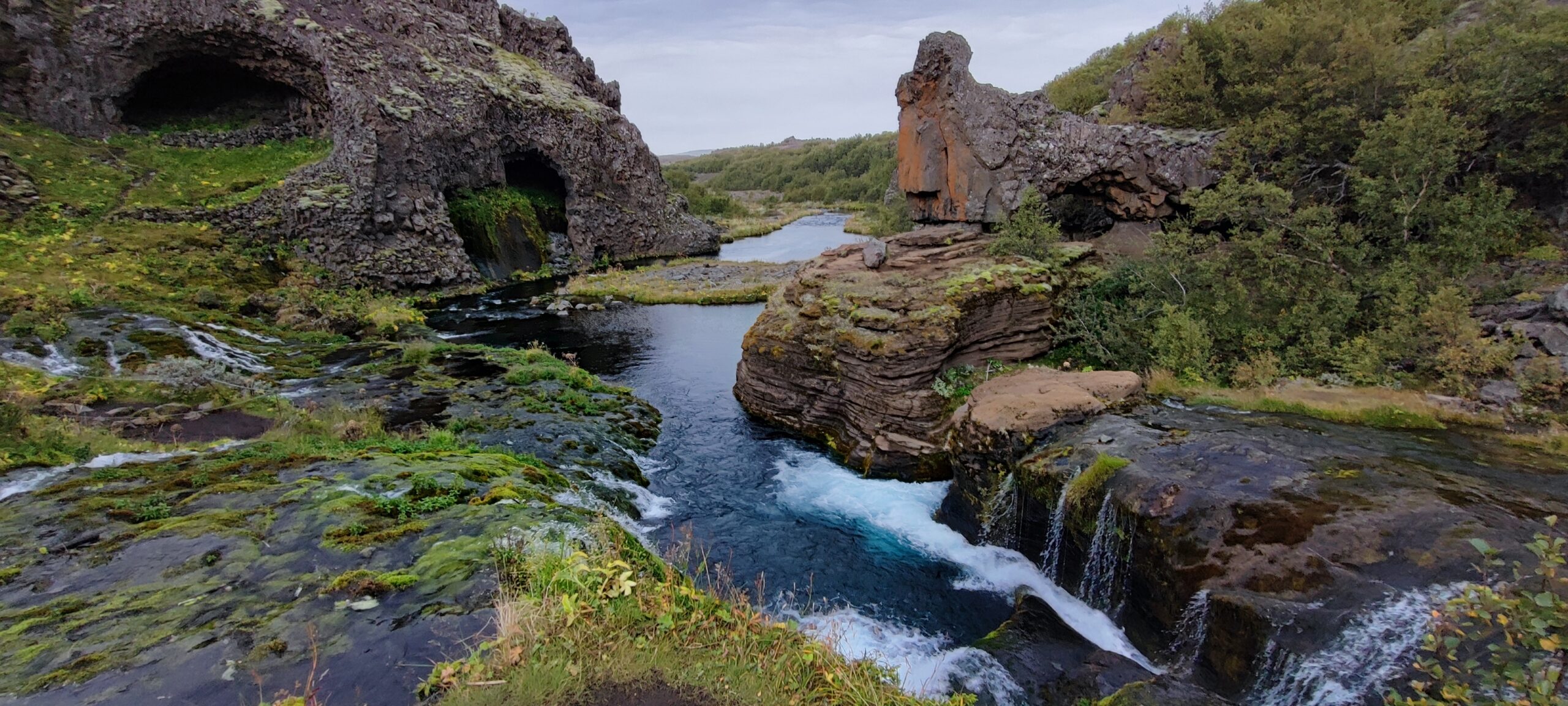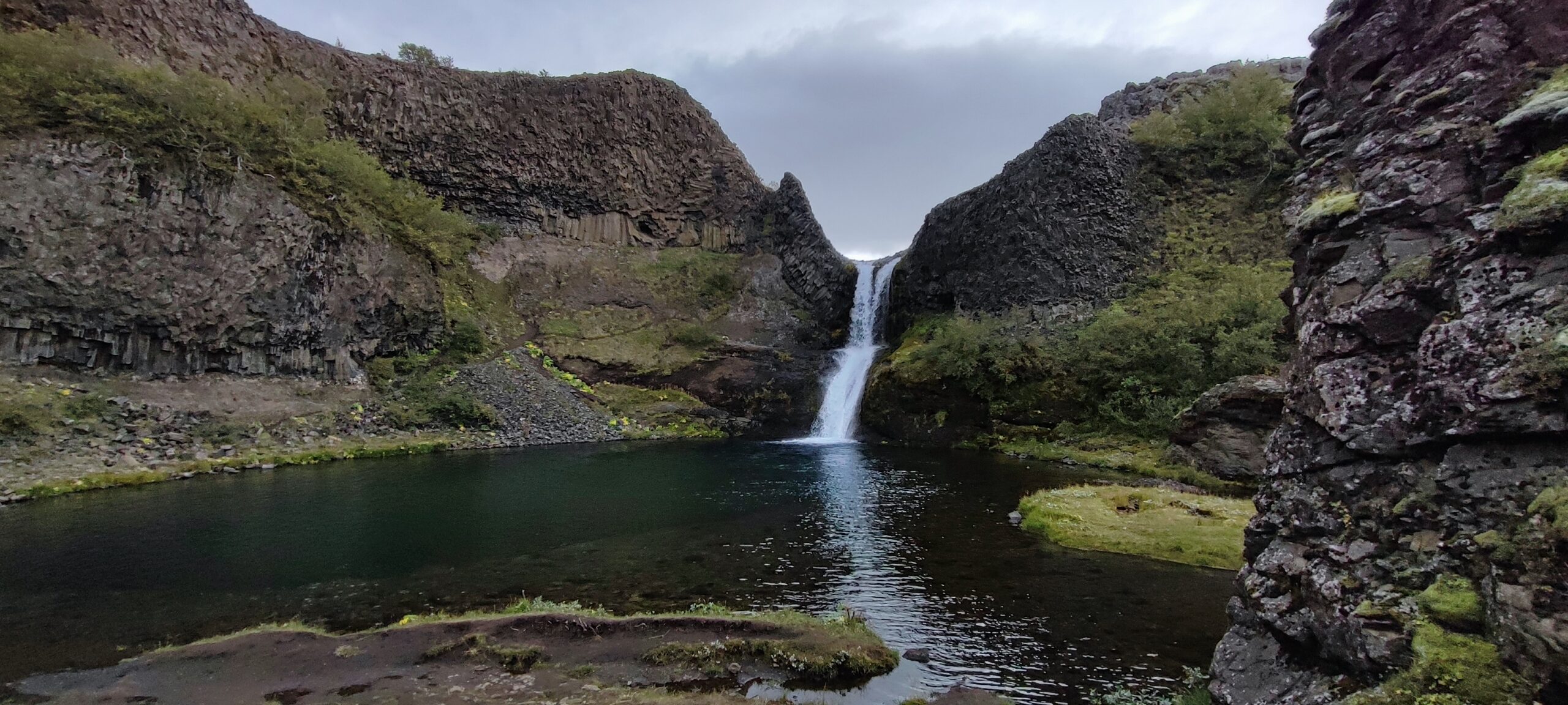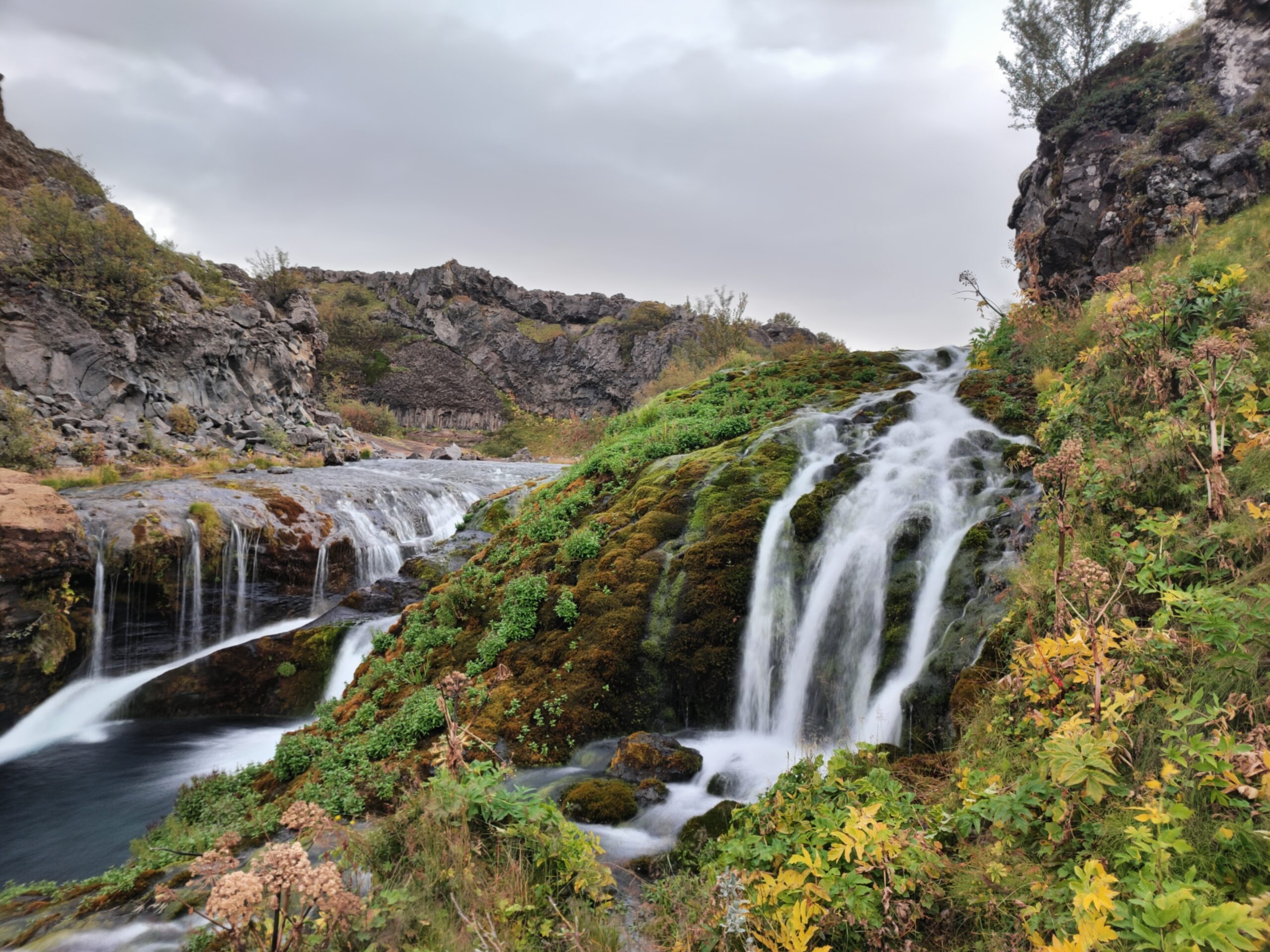 Heute in der Früh war es so weit, Lexe probiert das Auto aus. Unser Ziel war Gjáin. “Gjáin (isländisch für die Schlucht) ist ein kurzer Talbereich im Süden Islands mit zahlreichen kleineren Wasserfällen des Flusses Rauðá. An der oberen kesselartigen Eintiefung befindet sich der Wasserfall Gjárfoss.” Hätte ich gewusst, wie der letzte Teil der Straße ist, wäre ich wahrscheinlich nicht gefahren. ;- ) Es war nämlich eine der berüchtigten Gravel Roads. Oida, sag ich da nur. Wir sind dahin gehoppelt und waren danach definitiv wachgerüttelt. Es gab sogar eine Stelle, wo “Furten für blutige Anfänger” angesagt war. Furten bedeutet, dass man durch einen Fluß fahren muss. Es war eigentlich nur ein Bächlein, das nicht tiefer war als eine Lacke, aber immerhin. Hihi! Mein Papa hätte sich krumm und scheckig gelacht über mich, dass ich so ein Schisserchen bin, aber ich glaube, er wäre auch ein bisschen stolz auf mich, dass ich mich getraut habe, zu fahren.