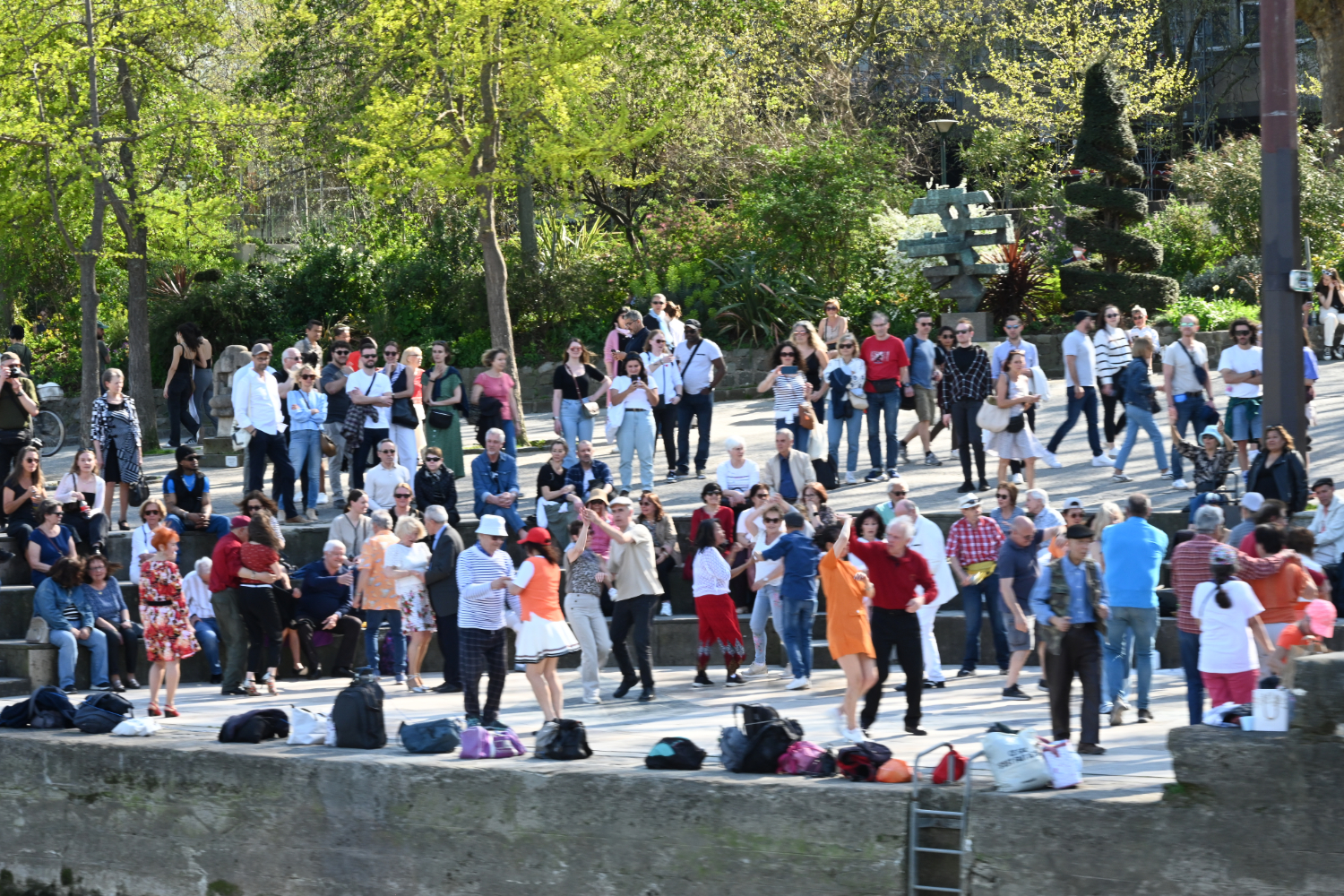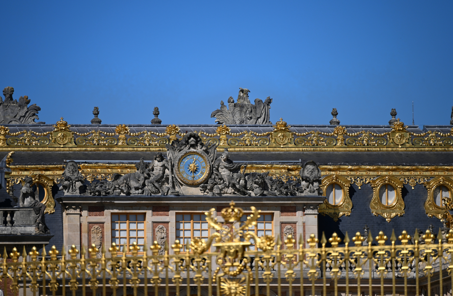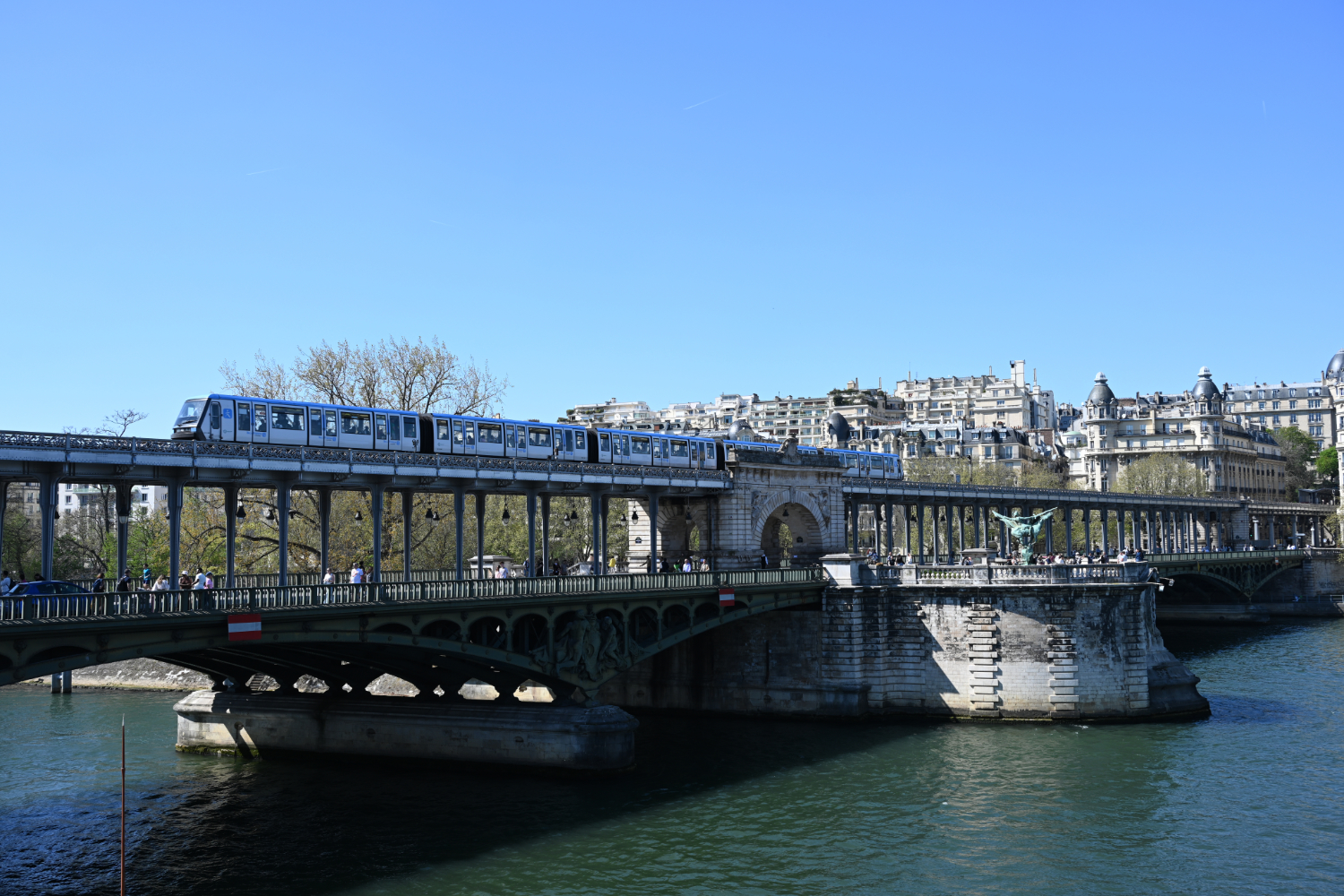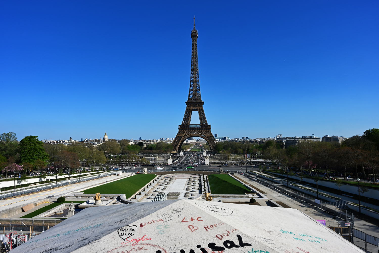 Am nächsten Morgen gab es ein französisches Frühstück und danach machten wir uns auf den Weg zum Schloss Versailles. Wir hatten unsere Tickets im Voraus gebucht, aber viele, viele andere Touristen hatten die gleiche Idee. Es war also extrem viel los und man wurde quasi durch die Ausstellungsräume geschoben. Das fand ich nicht ganz so prickelnd. Die Ausstellungsräume im unteren Geschoss haben allerdings viele ausgelassen, weil sie gleich in den Park gegangen sind. Dort war es dann wesentlich angenehmer. Danach sind auch wir in die Gartenanlage mit den Springbrunnen, wo sich die Menschenmassen dann relativ gut verlaufen haben. Wir hatten strahlend blauen Himmel und es war für Anfang April schon ziemlich warm. Was wir leider nicht wussten, war, dass die Brunnen nicht ständig in Betrieb sind. Und so standen wir dann bald vor ausgeschalteten Brunnen. Aber es war dann eh schon Zeit für das Mittagessen, für das wir uns einen Tisch in einer nahegelegenen Pizzeria reserviert hatten. Danach hatten wir Tickets für eine Bootsfahrt auf der Seine mit Waffelverkostung gebucht. Vorher haben wir aber noch von der Pont de Bir Hakeim aus Fotos vom Eiffelturm gemacht.