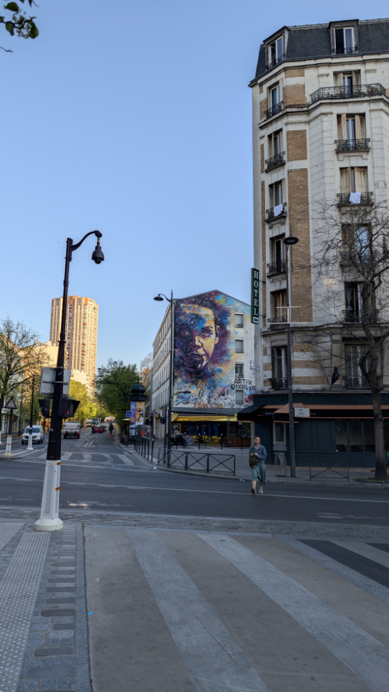 Die Reise war das Maturageschenk von Christian und mir für meinen Neffen Theo. Mit von der Partie waren auch meine Schwester Petra und mein Schwager Simon. Am 4. April ging es los. Christian und ich sind mit dem Zug zum Flughafen nach Wien gefahren, die anderen sind mit dem Auto aus Kärnten angereist. Bis zu unserer Ankunft in Paris verlief die Reise ohne Komplikationen. Auch das vorbestellte Taxi wartete bereits auf uns und hat uns dann ein Weilchen durch den dichten Verkehr am Freitag Nachmittag kutschiert. Bei unserer Unterkunft mussten wir dann erst mal herausfinden, wie man den QR-Code zum Türöffnen richtig einscannt. Nachdem das auch geklappt hatte, bezogen wir unser Apartment. Das war richtig cool! Wir hatten zwei Schlafzimmer, zwei Bäder, zwei Klos, eine Küche mit Schlafcouch und eine tolle Terrasse. Danach haben wir noch die Gegend ein bisschen erkundet und haben dann noch etwas gegessen.
